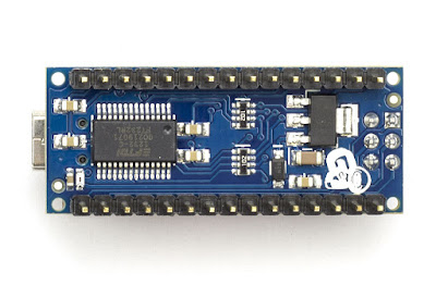 Arduino Nano, về chức năng thì nó có chức năng tương tự như Arduino Uno, các thư viện dùng được cho Arduino Uno thì cũng có thể dùng được cho Arduino Nano. Điểm khác biệt của Arduino Nano so với Arduino Uno là nó thiếu jack nguồn ngoài, đồng thời kích thước của nó cũng nhỏ gọn hơn Arduino Uno. Việc cấp nguồn ngoài có thể được thực hiện thông qua chân Vin và chân GND (nếu nguồn từ 6 đến 20V) hoặc chân GND và chân 5V (nếu nguồn cấp là 5V chuẩn). Chân 5V trong Arduino Nano vừa là chân 5V lấy nguồn ra, vừa có thể là chân 5V cấp nguồn vào. Hình bên dưới thể hiện các chân của Arduino Nano.