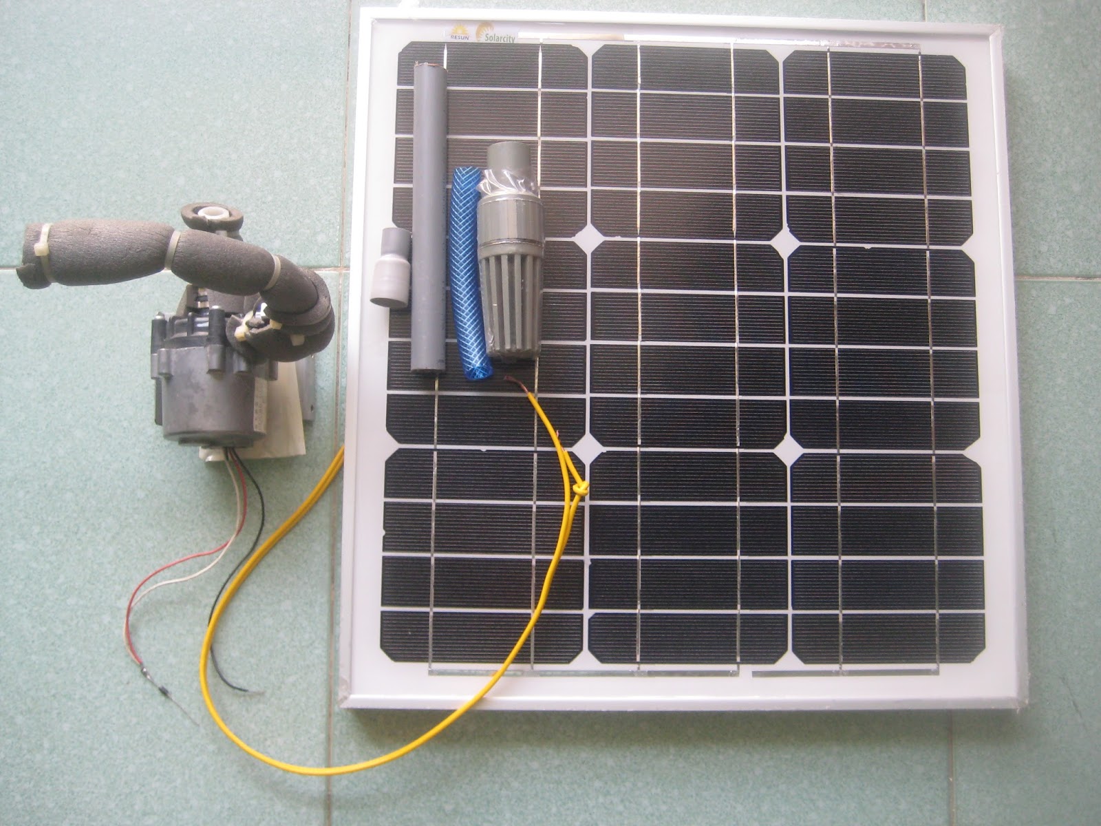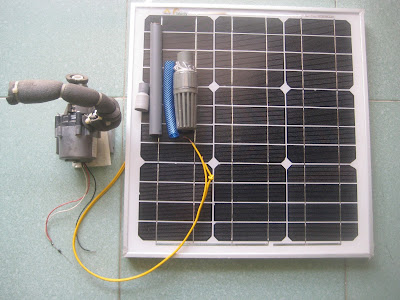 Bộ này bao gồm một tấm năng lượng mặt trời 30W, một máy bơm DC 12/24V, một ống nối phi 16 ra phi 21, một đoạn ống phi 21, một lúp pê phi 21, một đoạn ống mẫu phi 14 loại ống hai lớp. Bộ này có thể bơm được lượng nước khoảng 7 lít/phút, với chiều cao đẩy khoảng 4m. Bộ này có thể sử dụng để bơm nước làm mát máy nhà, hoặc bơm nước vào các bồn chứa, hoặc sử dụng trong hệ thống tưới nước nhỏ giọt. Bộ bơm nước này là một sự sáng tạo của chủ shop, Thạc Sĩ Huỳnh Minh Phú, nhằm nâng cao khả năng ứng dụng của năng lượng mặt trời vào thực tế.