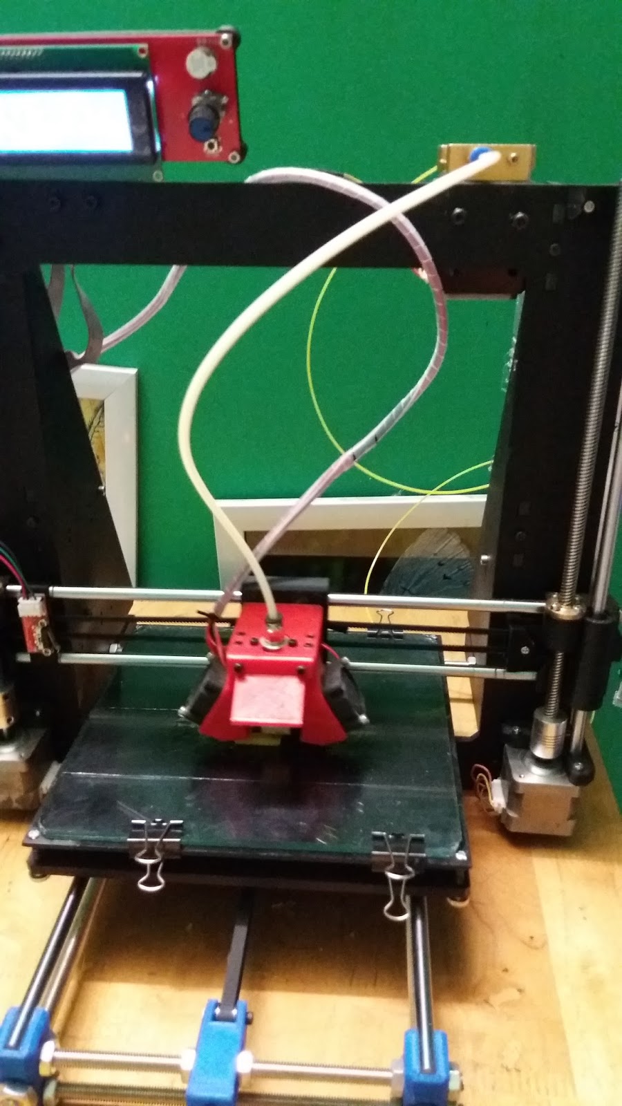 Đây là loại máy in 3D do bên cửa hàng ráp. Máy có thể in được vật thể có kích thước tối đa là 20cm x 20cm x 20cm. Máy sử dụng 5 động cơ bước và bộ điều khiển dùng Arduino Mega. File in là file được thiết kế trên các phần mềm vẽ kỹ thuật như SolidWorks, Inventors, CAD 3D, Pro Engineer...sau đó chuyển file đã thiết kế xong thành file .stl rồi đưa qua một phần mềm giao tiếp với máy in 3D. Các bạn có thể chọn phần mềm Repetier, một phần mềm miễn phí để thữ hiện điều này. Khi mua máy, khách hàng sẽ nhận được sự hướng dẫn đầy đủ của cửa hàng.