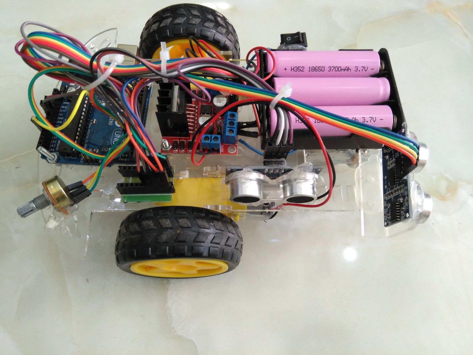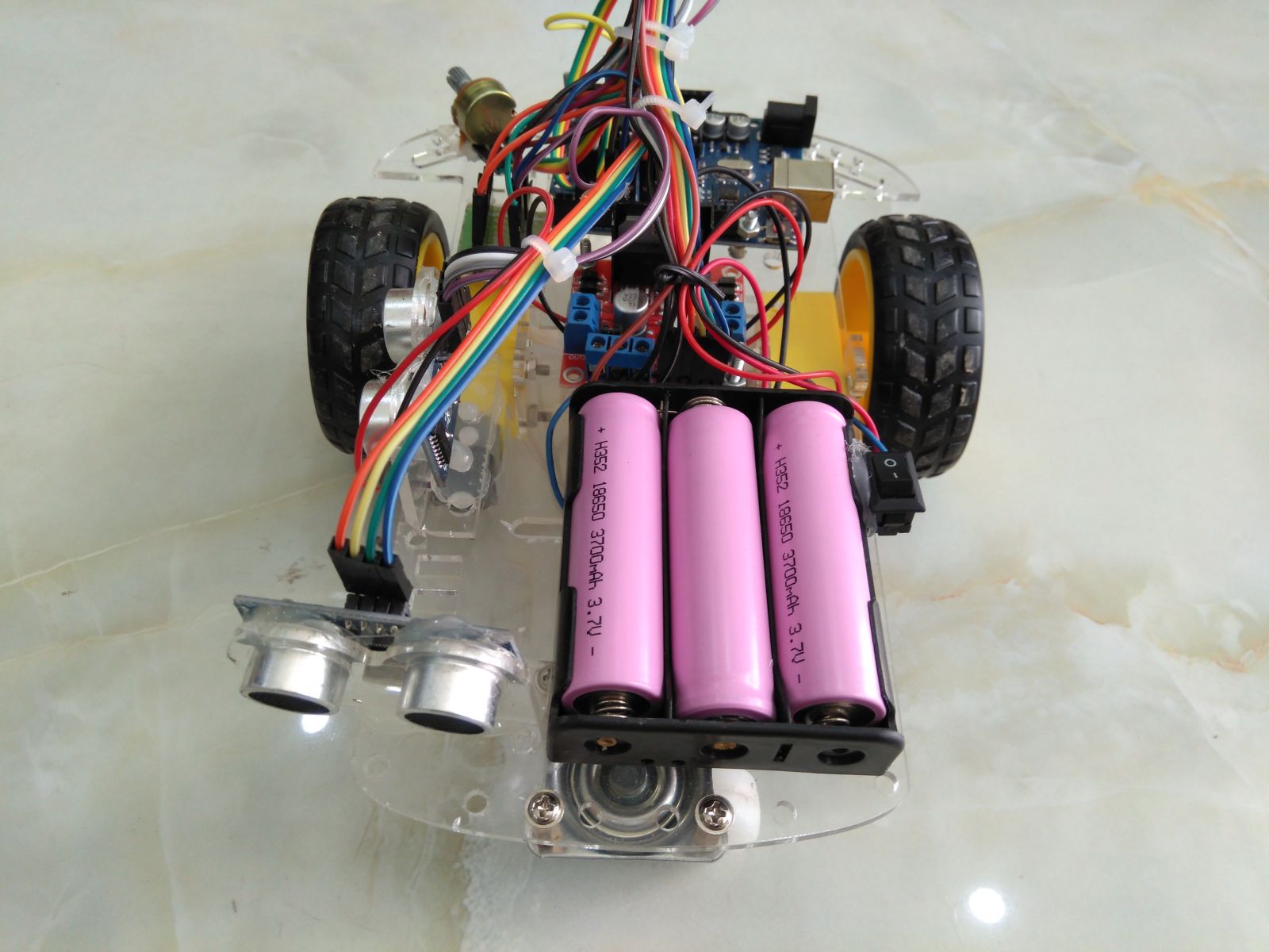 Bộ robot này bao gồm: 02 cảm biến siêu âm, 1 khung robot 3 bánh, 1 mạch cầu H L298N, 1 Arduino Uno R3, 1 đế pin, 3 pin 18650 có thể sạc lại, 1 bộ sạc. Khi khách hàng mua cả bộ sản phẩm đã chế tạo rồi hoặc từng sản phẩm riêng biệt trong bộ, shop sẽ tặng kèm code của robot để quý khách có thể hiểu rõ hơn và có thể tự lập trình hoặc thay đổi được.